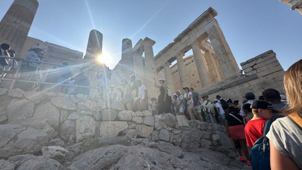 Sin embargo, la visita no fue solo una clase magistral de historia. En nuestra aventura hubo momentos divertidos tanto como educativos. Después de explorar la Acrópolis, el grupo tuvo tiempo para relajarse en los alrededores, donde se organizaron actividades que permitieron a los viajeros conectarse entre sí y disfrutar del ambiente vibrante de Atenas.