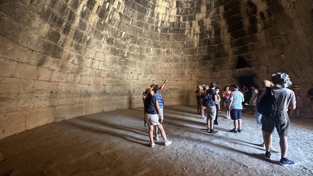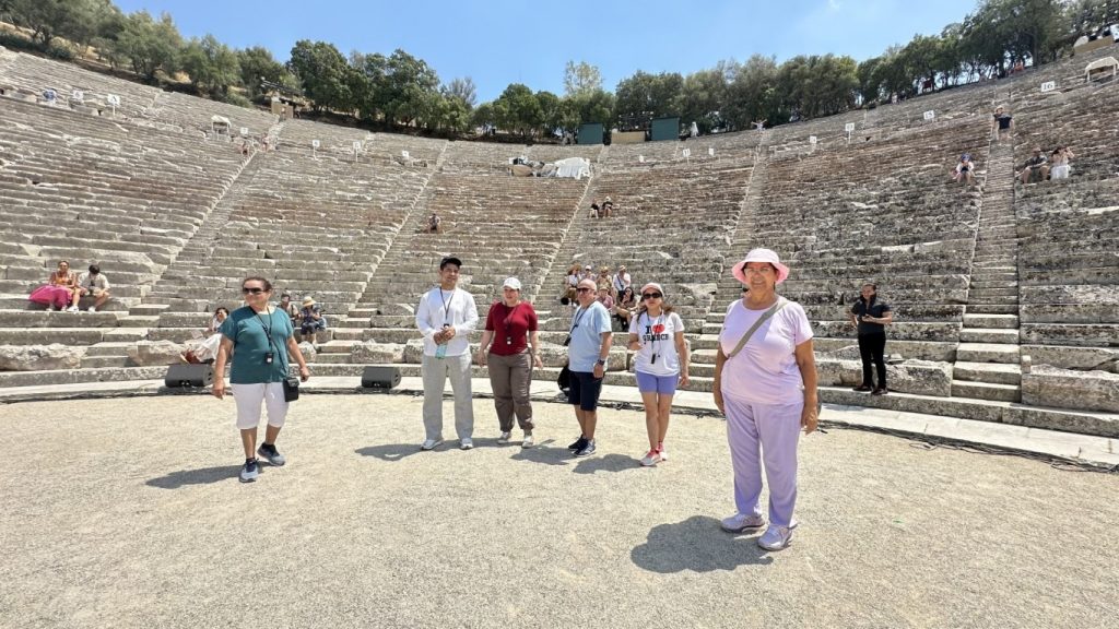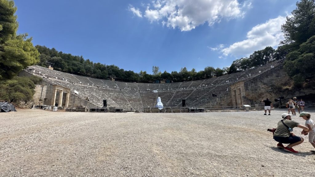 Cerca de Micenas se encuentra otro sitio arqueológico notable: el antiguo Teatro de Epidauro. Aunque es más reciente que Micenas, perteneciendo al periodo clásico griego, el teatro es un ejemplo excepcional de la arquitectura y la acústica antiguas. Construido en el siglo IV a.C. y dedicado al dios Asclepio, el teatro de Epidauro es famoso por su diseño perfecto, que permite que el sonido se proyecte con claridad desde el escenario hasta la última fila de asientos.