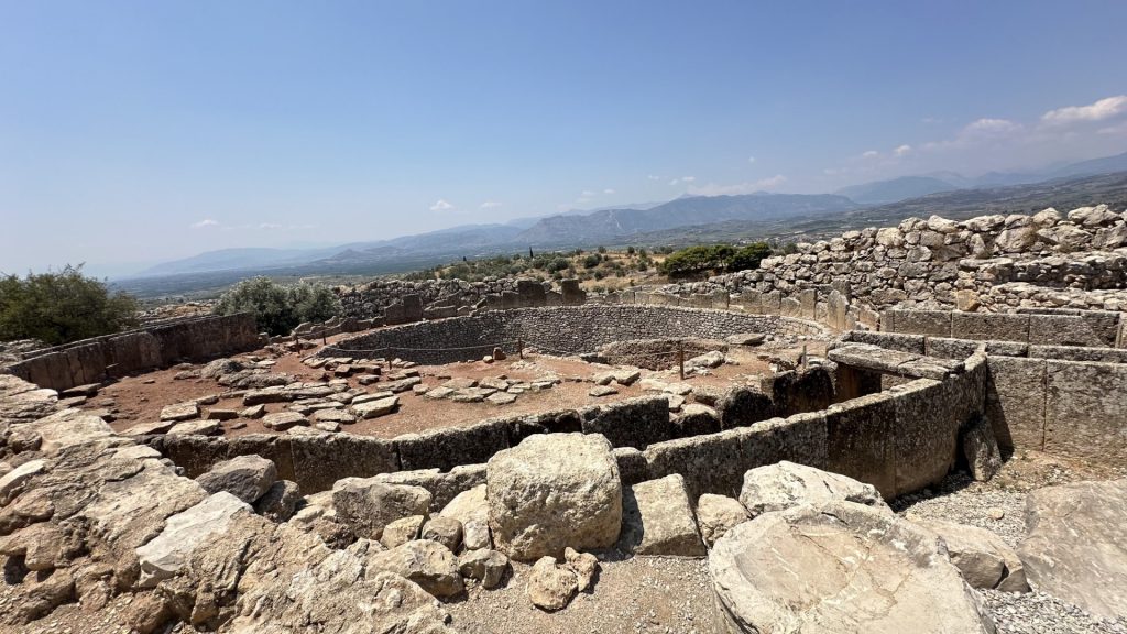El palacio de Micenas, situado en la cima de la colina, era el centro administrativo y religioso de la ciudad, con estructuras complejas que incluían salas de audiencias, almacenes y áreas residenciales. Las tumbas de los reyes micénicos, particularmente las tumbas en forma de tholos como el Tesoro de Atreo, son testimonios de la sofisticación y la riqueza de la élite gobernante.