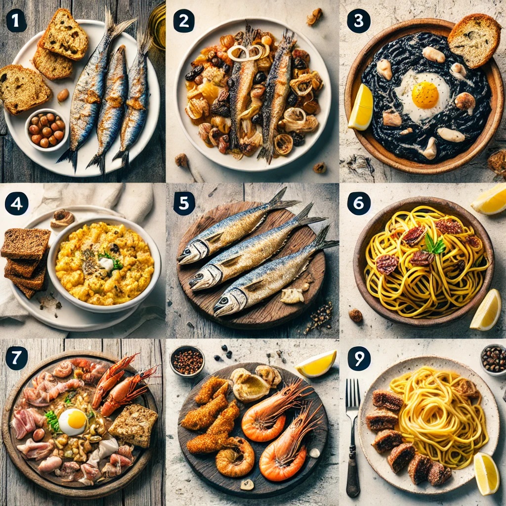- Descripción: Sardinas marinadas con cebolla, pasas y piñones. Es uno de los platos más tradicionales de Venecia, que mezcla el sabor agridulce típico de la región.