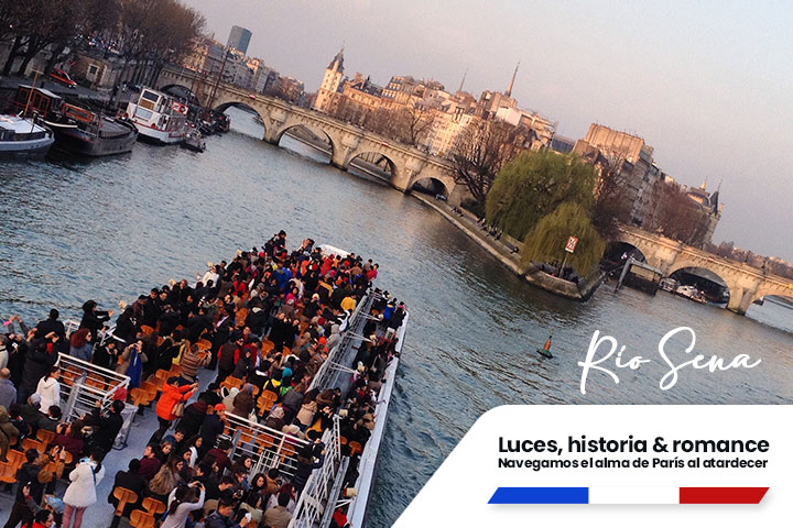 Por la tarde, embarcamos en un crucero que serpentea por el corazón de París como un poema en movimiento. Desde el muelle de la Torre, el barco se desliza bajo puentes centenarios —Pont Alexandre III, Pont des Arts— mientras las fachadas doradas del Louvre, Notre-Dame y el Museo de Orsay nos saludan desde sus riberas.